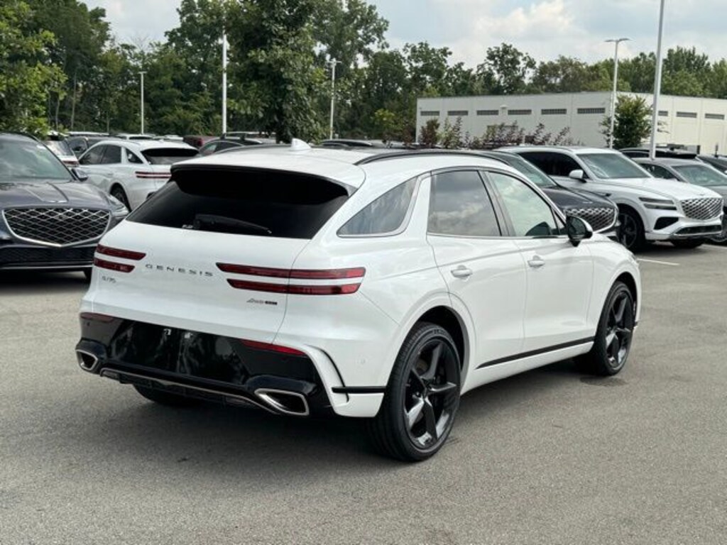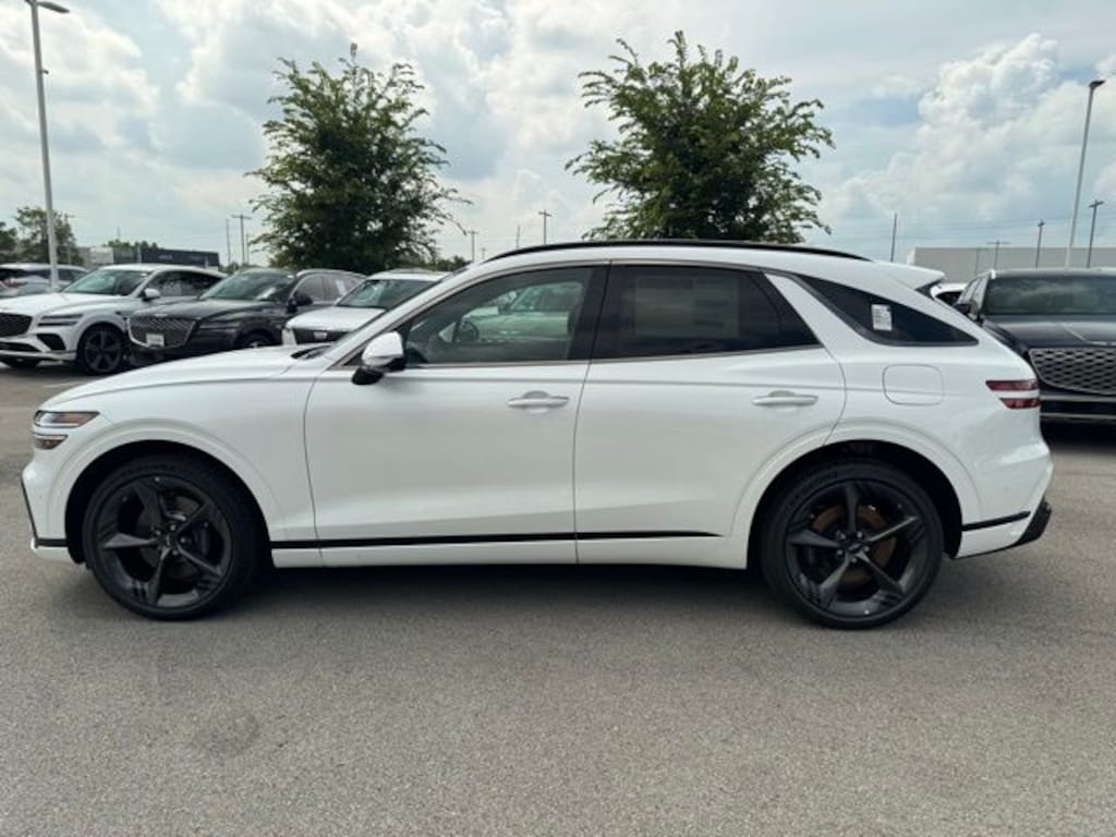 This GV70 is well equipped with Option Group 01, 16 Speakers, 4-Wheel Disc Brakes, ABS brakes, Adaptive suspension, Air Conditioning, Alloy wheels, AM/FM radio: SiriusXM, Android Auto & Apple CarPlay, Anti-whiplash front head restraints, Auto High-beam Headlights, Auto-dimming door mirrors, Auto-dimming Rear-View mirror, Automatic temperature control, Brake assist, Bumpers: body-color, Cargo Tray, Delay-off headlights, Driver door bin, Driver vanity mirror, Dual front impact airbags, Dual front side impact airbags, Electronic Stability Control, Emergency communication system: Genesis Connected Services, Exterior Parking Camera Rear, First Aid Kit, Four wheel independent suspension, Front anti-roll bar, Front Bucket Seats, Front Center Armrest w/Storage, Front dual zone A/C, Front reading lights, Fully automatic headlights, Garage door transmitter: HomeLink, Heads-Up Display, Heated and Ventilated Front Bucket Seats, Heated door mirrors, Heated front seats, Heated rear seats, Heated steering wheel, Illuminated entry, Knee airbag, Leather steering wheel, Low tire pressure warning, Memory seat, Nappa Leather Seating Surfaces, Navigation System, NFC Key Card, Occupant sensing airbag, Outside temperature display, Overhead airbag, Overhead console, Panic alarm, Passenger door bin, Passenger vanity mirror, Power door mirrors, Power driver seat, Power Liftgate, Power moonroof, Power passenger seat, Power steering, Power windows, Radio: 14.5" Navigation System with AM/FM/HD, Rain sensing wipers, Rear air conditioning, Rear anti-roll bar, Rear reading lights, Rear seat center armrest, Rear window defroster, Rear window wiper, Remote keyless entry, Security system, Speed control, Speed-sensing steering, Speed-Sensitive Wipers, Split folding rear seat, Spoiler, Steering wheel memory, Steering wheel mounted audio controls, Tachometer, Telescoping steering wheel, Tilt steering wheel, Traction control, Trip computer, Turn signal indicator mirrors, Variably intermittent wipers, Ventilated front seats, and Wheels: 21" Dark Sputtering Alloy.