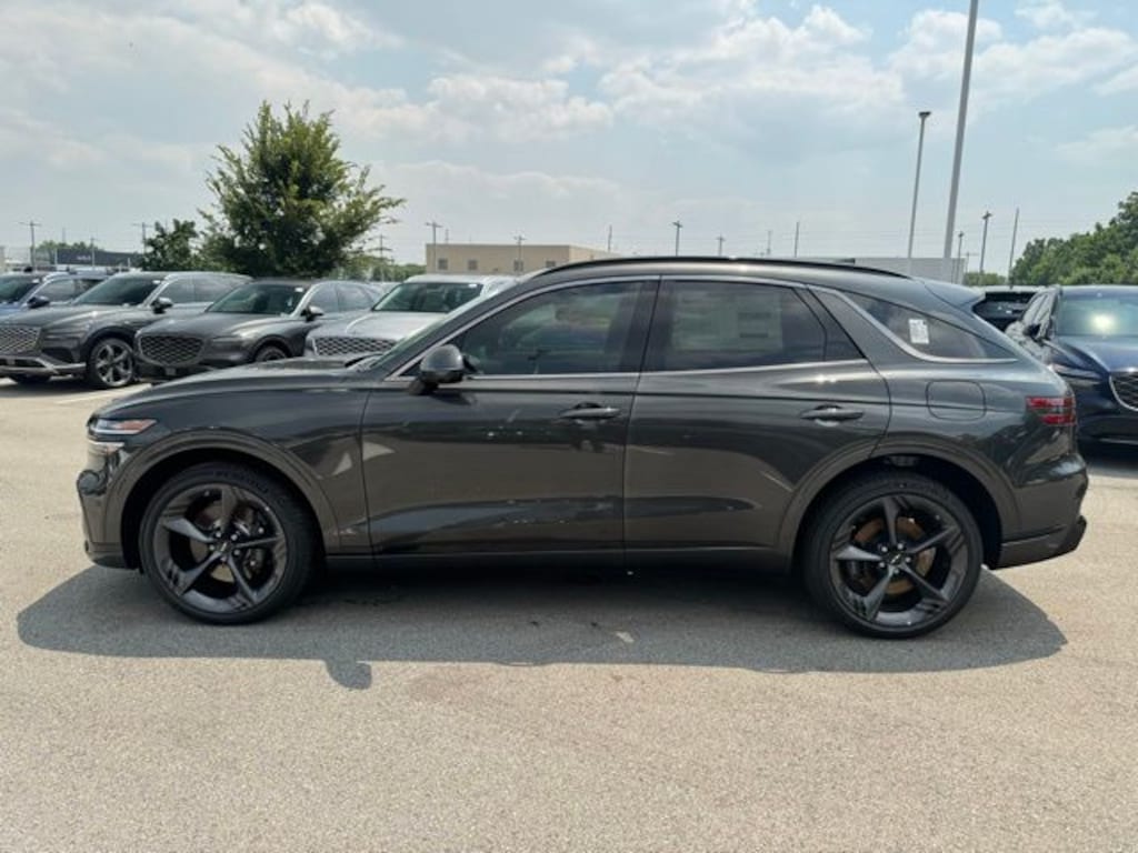 This GV70 is well equipped with Option Group 01, 16 Speakers, 4-Wheel Disc Brakes, ABS brakes, Adaptive suspension, Air Conditioning, Alloy wheels, AM/FM radio: SiriusXM, Android Auto & Apple CarPlay, Anti-whiplash front head restraints, Auto High-beam Headlights, Auto-dimming door mirrors, Auto-dimming Rear-View mirror, Automatic temperature control, Brake assist, Bumpers: body-color, Cargo Net, Cargo Tray, Delay-off headlights, Driver door bin, Driver vanity mirror, Dual front impact airbags, Dual front side impact airbags, Electronic Stability Control, Emergency communication system: Genesis Connected Services, Exterior Parking Camera Rear, First Aid Kit, Four wheel independent suspension, Front anti-roll bar, Front Bucket Seats, Front Center Armrest w/Storage, Front dual zone A/C, Front reading lights, Fully automatic headlights, Garage door transmitter: HomeLink, Heads-Up Display, Heated and Ventilated Front Bucket Seats, Heated door mirrors, Heated front seats, Heated rear seats, Heated steering wheel, Illuminated entry, Knee airbag, Leather steering wheel, Low tire pressure warning, Memory seat, Nappa Leather Seating Surfaces, Navigation System, NFC Key Card, Occupant sensing airbag, Outside temperature display, Overhead airbag, Overhead console, Panic alarm, Passenger door bin, Passenger vanity mirror, Power door mirrors, Power driver seat, Power Liftgate, Power moonroof, Power passenger seat, Power steering, Power windows, Radio: 14.5" Navigation System with AM/FM/HD, Rain sensing wipers, Rear air conditioning, Rear anti-roll bar, Rear reading lights, Rear seat center armrest, Rear window defroster, Rear window wiper, Remote keyless entry, Security system, Speed control, Speed-sensing steering, Speed-Sensitive Wipers, Split folding rear seat, Spoiler, Steering wheel memory, Steering wheel mounted audio controls, Tachometer, Telescoping steering wheel, Tilt steering wheel, Traction control, Trip computer, Turn signal indicator mirrors, Variably intermittent wipers, Ventilated front seats, and Wheels: 21" Dark Sputtering Alloy.