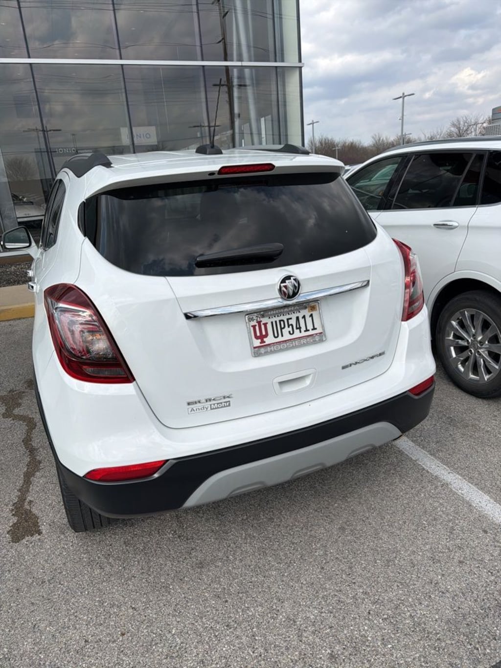 This Encore is well equipped with Preferred Equipment Group 1SB, Wheels: 18" Machined-Face Alloy, 2-Way Manual Front Passenger Seat Adjuster, 3.53 Final Drive Axle Ratio, 4-Wheel Disc Brakes, 6 Speakers, 6-Way Power Driver Seat Adjuster, ABS brakes, Air Conditioning, All Weather Floor Mats, AM/FM radio: SiriusXM, Apple CarPlay/Android Auto, Black Carbon Metallic Lower Exterior Accent Color, Brake assist, Cloth w/Leatherette Seat Trim, Color Match Body Molding, Compass, Delay-off headlights, Driver door bin, Driver vanity mirror, Driver's Seat Mounted Armrest, Dual front impact airbags, Dual front side impact airbags, Electronic Stability Control, Emergency communication system: OnStar Guidance, Exterior Parking Camera Rear, Front anti-roll bar, Front Bucket Seats, Front License Plate Bracket, Front reading lights, Front wheel independent suspension, Fully automatic headlights, Heated door mirrors, Illuminated entry, Knee airbag, Low tire pressure warning, Occupant sensing airbag, Outside temperature display, Overhead airbag, Panic alarm, Passenger door bin, Passenger vanity mirror, Power door mirrors, Power driver seat, Power steering, Power windows, Premium audio system: IntelliLink, Radio data system, Radio: Buick IntelliLink AM/FM Stereo, Rear seat center armrest, Rear side impact airbag, Rear window defroster, Rear window wiper, Remote keyless entry, Ride & Handling Suspension, Roof rack: rails only, Security system, SiriusXM Satellite Radio, Speed control, Speed-sensing steering, Split folding rear seat, Spoiler, Steering wheel mounted audio controls, Tachometer, Telescoping steering wheel, Tilt steering wheel, Traction control, Trip computer, Turn signal indicator mirrors, and Variably intermittent wipers.