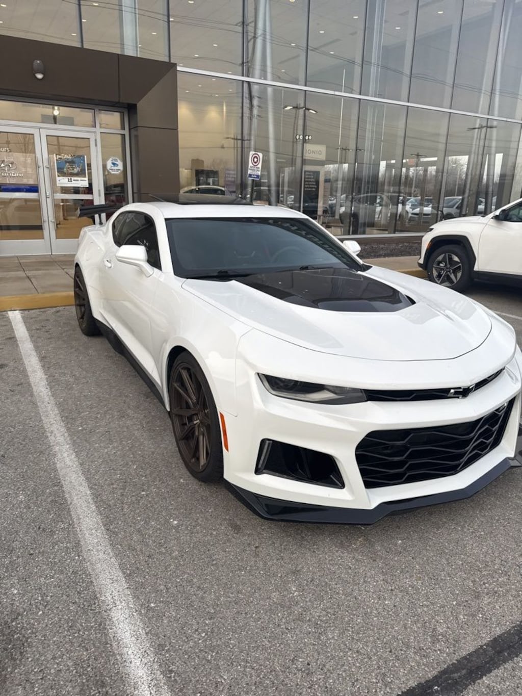 Introducing the 2018 Chevrolet Camaro ZL1 - a true performance powerhouse that's priced to sell fast. This stunning white sports car is equipped with a 6.2L V8 Supercharged engine and a 10-Speed Automatic transmission, delivering an exhilarating driving experience you won't soon forget.