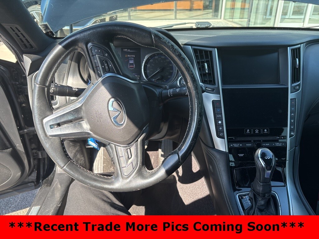 Black Obsidian 2019 INFINITI Q60 3.0t LUXE RWD 7-Speed Automatic 3.0L V6 ABS brakes, Bumpers: body-color, Driver door bin, Driver vanity mirror, Dual front side impact airbags, Four wheel independent suspension, Front Bucket Seats, Front Center Armrest, Garage door transmitter: HomeLink, Heated door mirrors, Leather Shift Knob, Leather steering wheel, Leatherette Seating Surfaces, Low tire pressure warning, Navigation System, Outside temperature display, Power door mirrors, Power driver seat, Power moonroof, Power passenger seat, Power steering, Remote keyless entry, Semi-Aniline Leather-Appointed Seating Surfaces, Speed-sensing steering, Steering wheel mounted audio controls, Telescoping steering wheel, Traction control.