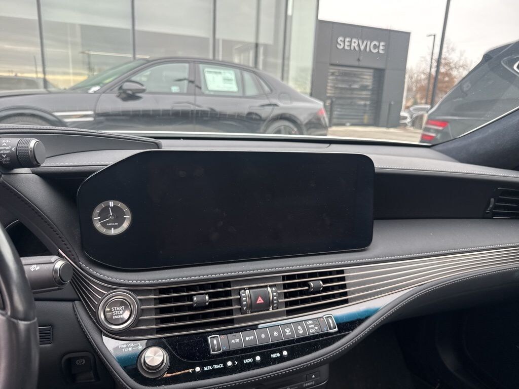 This LS is well equipped with AWD, Leather, 12 Speakers, 4-Wheel Disc Brakes, ABS brakes, Adaptive suspension, Air Conditioning, Alloy wheels, AM/FM radio: SiriusXM, Apple CarPlay/Android Auto, Auto High-beam Headlights, Auto tilt-away steering wheel, Auto-dimming door mirrors, Auto-dimming Rear-View mirror, Automatic temperature control, Brake assist, Bumpers: body-color, CD player, Compass, Delay-off headlights, Door auto-latch, Driver door bin, Driver vanity mirror, Dual front impact airbags, Dual front side impact airbags, DVD-Audio, Electronic Stability Control, Emergency communication system: Enform Safety Connect (complimentary 3-year subscription), Exterior Parking Camera Rear, Four wheel independent suspension, Front anti-roll bar, Front Bucket Seats, Front Center Armrest, Front dual zone A/C, Front reading lights, Fully automatic headlights, Garage door transmitter: HomeLink, Genuine wood console insert, Genuine wood door panel insert, Head restraints memory, Headlight cleaning, Heated & Ventilated Front Bucket Seats, Heated door mirrors, Heated front seats, Heated steering wheel, Illuminated entry, Knee airbag, Leather Seat Trim, Leather Shift Knob, Leather steering wheel, Lexus Enform App Suite 2.0, Lexus Premium Audio System, Low tire pressure warning, Memory seat, Navigation System, Navigation System w/12.3" Touchscreen, Occupant sensing airbag, Outside temperature display, Overhead airbag, Overhead console, Panic alarm, Passenger door bin, Passenger vanity mirror, Power adjustable front head restraints, Power door mirrors, Power driver seat, Power moonroof, Power passenger seat, Power steering, Power windows, Radio data system, Rain sensing wipers, Rear anti-roll bar, Rear reading lights, Rear seat center armrest, Rear side impact airbag, Rear Window Blind, Rear window defroster, Remote keyless entry, Security system, Speed control, Speed-sensing steering, Speed-Sensitive Wipers, Steering wheel memory, Steering wheel mounted audio controls, Suede Headliner, Tachometer, Telescoping steering wheel, Tilt steering wheel, Traction control, Trip computer, Turn signal indicator mirrors, Variably intermittent wipers, Ventilated front seats, and Wheels: 19" Split 10-Spoke Alloy.