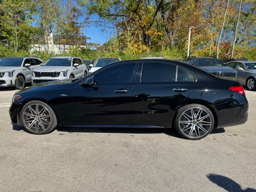 This C-Class is well equipped with AMG® Night Package Components, AMG® Optics Package, AMG® Performance Studio Package, Driver Assistance Package (Active Lane Change Assist, Active Speed Limit Assist, DISTRONIC PLUS® w/Steering Assist & Stop & Go Assist, PRE-SAFE® Impulse Side, PRE-SAFE® PLUS, and Route-Based Speed Adaptation), Driver Assistance Package Plus, Individualization Package, Pinnacle Trim Package (Augmented Video for Navigation, Burmester® 3D Surround Sound System, DIGITAL LIGHT w/Projections, Enhanced Ambient Lighting, Head-Up Display w/AMG® Specific Content, and MB Navigation), 4MATIC®, ABS brakes, Dual front side impact airbags, Emergency communication system: Mercedes-Benz Emergency Call Service, Front Bucket Seats, Front Center Armrest, Heated front seats, Knee airbag, Low tire pressure warning, Overhead console, Panorama Roof, Passenger vanity mirror, Power driver seat, Power moonroof, Power passenger seat, Power steering, Power windows, Split folding rear seat, Telescoping steering wheel, Tilt steering wheel, Wheels: 20" x 8J Fr & 20" x 9.5J Rr AMG® Split 10-Spk, 11.9" Center Touchscreen Display, 4-Wheel Disc Brakes, 5 Speakers, Adaptive suspension, Air Conditioning, Alloy wheels, AM/FM radio, Apple CarPlay®/Android Auto®, Auto High-beam Headlights, Auto tilt-away steering wheel, Auto-dimming door mirrors, Auto-dimming Rear-View mirror, Automatic temperature control, Brake assist, Bumpers: body-color, Compass, Delay-off headlights, Driver door bin, Driver vanity mirror, Dual front impact airbags, Electronic Stability Control, Exterior Parking Camera Rear, Four wheel independent suspension, Front anti-roll bar, Front dual zone A/C, Front reading lights, Fully automatic headlights, Garage door transmitter: HomeLink, Genuine wood dashboard insert, Head restraints memory, Heated door mirrors, Illuminated entry, Leather steering wheel, MB-Tex/Microfiber Upholstery, Memory seat, Occupant sensing airbag, Outside temperature display, Overhead airbag, Panic alarm, Passenger door bin, Power adjustable front head restraints, Power door mirrors, Power Heated Front Seats w/Memory, Premium audio system: MBUX, Radio data system, Radio: FrontBass 5-Speaker Audio System, Rain sensing wipers, Rear anti-roll bar, Rear fog lights, Rear reading lights, Rear seat center armrest, Rear window defroster, Remote keyless entry, Security system, Speed control, Speed-sensing steering, Spoiler, Sport steering wheel, Steering wheel memory, Steering wheel mounted audio controls, Tachometer, Traction control, Trip computer, Turn signal indicator mirrors, Variably intermittent wipers, and Weather band radio.