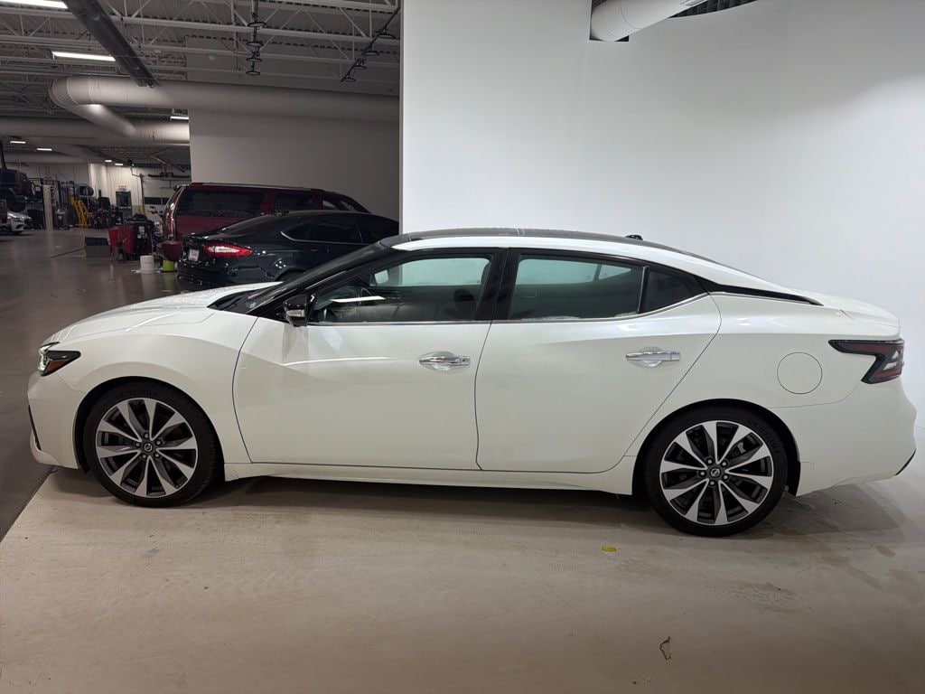 This Maxima is well equipped with 11 Speakers, 4-Wheel Disc Brakes, ABS brakes, Air Conditioning, Alloy wheels, AM/FM radio: SiriusXM, Auto High-beam Headlights, Auto tilt-away steering wheel, Auto-dimming door mirrors, Auto-dimming Rear-View mirror, Automatic temperature control, Blind Spot Warning, Body-Colored Splash Guards, Brake assist, Bumpers: body-color, CD player, Compass, Delay-off headlights, Driver door bin, Driver vanity mirror, Dual front impact airbags, Dual front side impact airbags, Electronic Stability Control, Emergency communication system: NissanConnect Services, Exterior Parking Camera Rear, First Aid Kit, Four wheel independent suspension, Front anti-roll bar, Front Bucket Seats, Front Center Armrest, Front dual zone A/C, Front fog lights, Front reading lights, Front Zero Gravity Climate-Controlled Seats, Fully automatic headlights, Garage door transmitter: HomeLink, Heated door mirrors, Heated front seats, Heated steering wheel, Illuminated entry, Knee airbag, Low tire pressure warning, Memory seat, Navigation System, NissanConnect featuring Apple CarPlay and Android Auto, Occupant sensing airbag, Outside temperature display, Overhead airbag, Overhead console, Panic alarm, Passenger door bin, Passenger vanity mirror, Power door mirrors, Power driver seat, Power moonroof, Power passenger seat, Power steering, Power windows, Premium Ascot Leather-Appointed Seat Trim, Radio data system, Radio: AM/FM/CD Audio System w/Navigation, Rain sensing wipers, Rear anti-roll bar, Rear Diffuser, Rear reading lights, Rear seat center armrest, Rear side impact airbag, Rear Window Blind, Rear window defroster, Remote keyless entry, Security system, Shopping Bag Hooks,