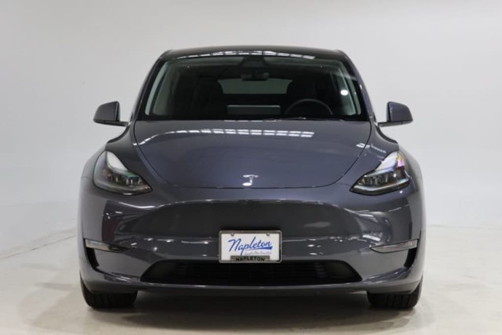 This Model Y is well equipped with 14 Speakers, 18" Alloy wheels, 4-Wheel Disc Brakes, 5 Seat Interior, 9.0 Axle Ratio, ABS brakes, Air Conditioning, Audio memory, Auto High-beam Headlights, Auto tilt-away steering wheel, Auto-dimming door mirrors, Auto-dimming Rear-View mirror, Automatic temperature control, Brake assist, Color Match Body Molding, Compass, Delay-off headlights, Driver door bin, Driver vanity mirror, Dual front impact airbags, Dual front side impact airbags, Electronic Stability Control, Emergency communication system, Exterior Parking Camera Rear, Four wheel independent suspension, Front anti-roll bar, Front Bucket Seats, Front Center Armrest, Front dual zone A/C, Front fog lights, Front reading lights, Fully automatic headlights, Genuine wood dashboard insert, Heated door mirrors, Heated front seats, Heated rear seats, Heated steering wheel, HVAC memory, Illuminated entry, Knee airbag, Lane Departure Warning System, Low tire pressure warning, Memory seat, Navigation System, Occupant sensing airbag, Outside temperature display, Overhead airbag, Passenger door bin, Passenger vanity mirror, Power door mirrors, Power driver seat, Power Liftgate, Power passenger seat, Power steering, Power windows, Premium Audio System, Radio data system, Rain sensing wipers, Rear reading lights, Rear seat center armrest, Rear window defroster, Security system, Speed control, Speed-sensing steering, Split folding rear seat, Steering wheel memory, Steering wheel mounted A/C controls, Steering wheel mounted audio controls, Telescoping steering wheel, Tilt steering wheel, Traction control, Trip computer, Variably intermittent wipers, Vegan Leather Seat Trim, and Wheels: 19" x 9.5" Gemini.