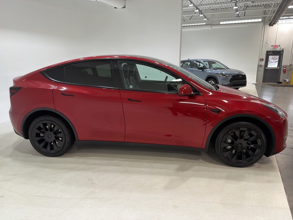 This Model Y is well equipped with 14 Speakers, 18" Alloy wheels, 4-Wheel Disc Brakes, 5 Seat Interior, 9.0 Axle Ratio, ABS brakes, Air Conditioning, Audio memory, Auto High-beam Headlights, Auto tilt-away steering wheel, Auto-dimming door mirrors, Auto-dimming Rear-View mirror, Automatic temperature control, Brake assist, Color Match Body Molding, Compass, Delay-off headlights, Driver door bin, Driver vanity mirror, Dual front impact airbags, Dual front side impact airbags, Electronic Stability Control, Emergency communication system, Exterior Parking Camera Rear, Four wheel independent suspension, Front anti-roll bar, Front Bucket Seats, Front Center Armrest, Front dual zone A/C, Front fog lights, Front reading lights, Fully automatic headlights, Genuine wood dashboard insert, Heated door mirrors, Heated front seats, Heated rear seats, Heated steering wheel, HVAC memory, Illuminated entry, Knee airbag, Lane Departure Warning System, Low tire pressure warning, Memory seat, Navigation System, Occupant sensing airbag, Outside temperature display, Overhead airbag, Passenger door bin, Passenger vanity mirror, Power door mirrors, Power driver seat, Power Liftgate, Power passenger seat, Power steering, Power windows, Premium Audio System, Radio data system, Rain sensing wipers, Rear reading lights, Rear seat center armrest, Rear window defroster, Security system, Speed control, Speed-sensing steering, Split folding rear seat, Steering wheel memory, Steering wheel mounted A/C controls, Steering wheel mounted audio controls, Telescoping steering wheel, Tilt steering wheel, Traction control, Trip computer, Variably intermittent wipers, Vegan Leather Seat Trim, and Wheels: 19" x 9.5" Gemini.